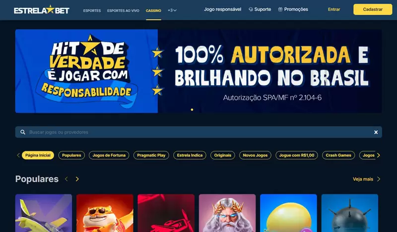 A seção de cassino da Estrela Bet é ampla, oferecendo desde clássicos até os jogos mais inovadores do mercado. Com suporte a dealers ao vivo e salas com interface amigável, a plataforma é projetada para uma experiência de jogo envolvente e divertida.